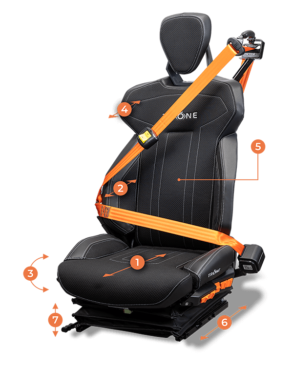 Le siège à suspension pneumatique (bas) idéal pour les chariots élévateurs, les engins de terrassement, les machines agricoles et forestières, les camionnettes et les transports publics. Multifonctionnel et personnalisé. Avec ce TRÔNE très confortable et sûr, toutes les options de réglage sont réglables électriquement. Toutes les préférences personnelles peuvent être réglées automatiquement avec effet immédiat grâce à la fonction unique de mémorisation.