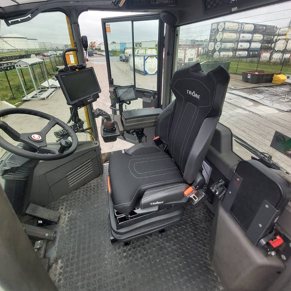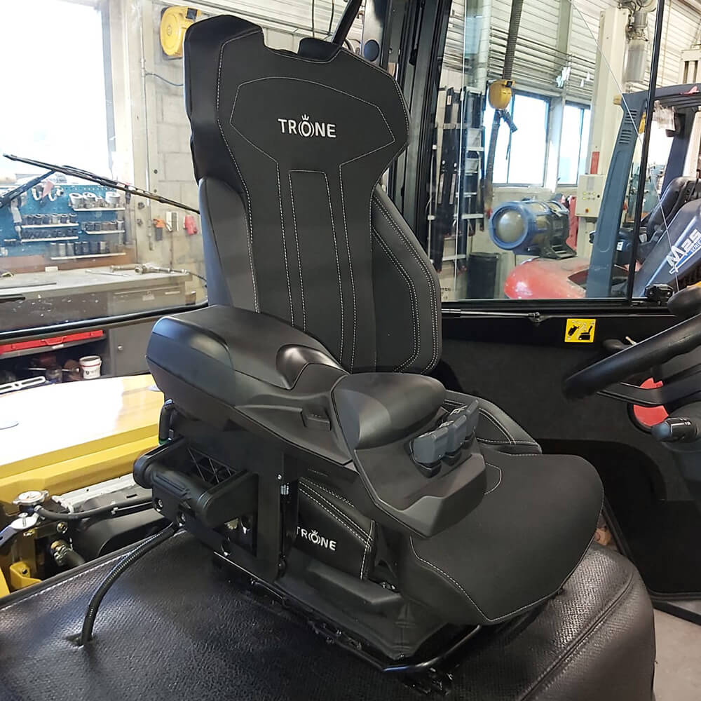 Le siège à suspension pneumatique (bas) idéal pour les chariots élévateurs, les engins de terrassement, les machines agricoles et forestières, les camionnettes et les transports publics. Multifonctionnel et personnalisé. Avec ce TRÔNE très confortable, toutes les options de réglage sont réglables électriquement. Toutes les préférences personnelles peuvent être réglées automatiquement avec effet immédiat grâce à la fonction unique de mémorisation.